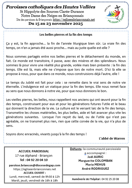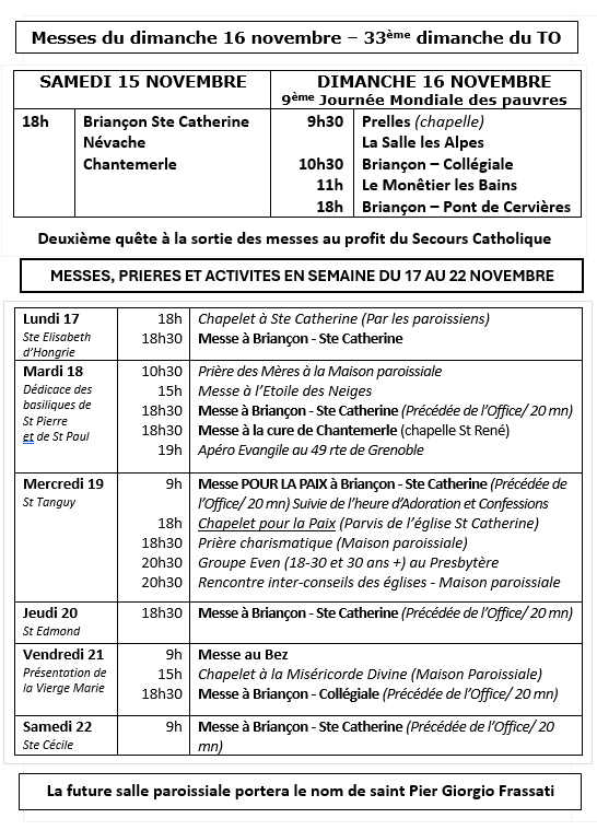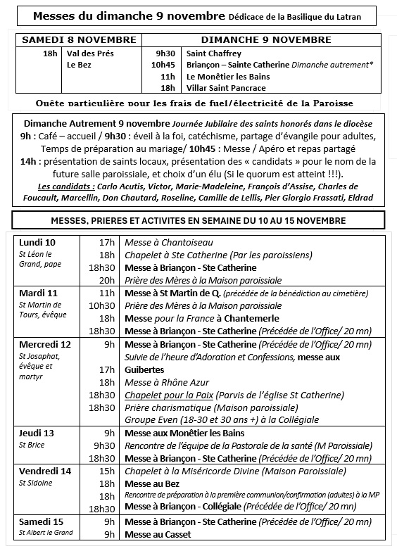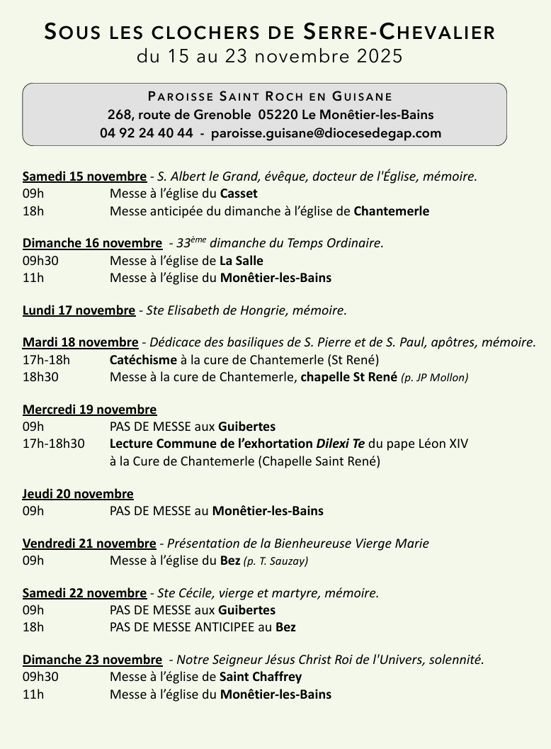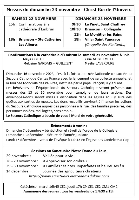 Messes en novembre 2025 dans le Briançonnais : Télécharger