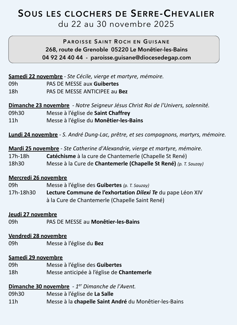Annonces Semaine 48/2025 – Messes en Guisane : Télécharger