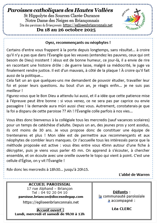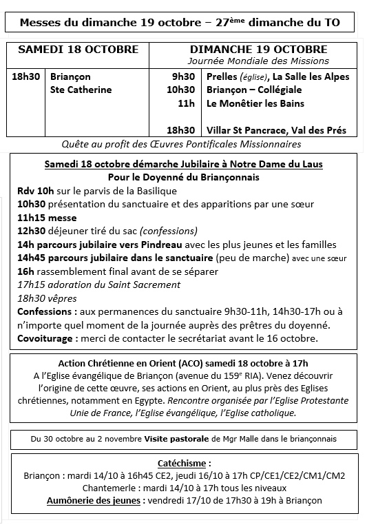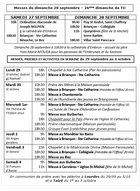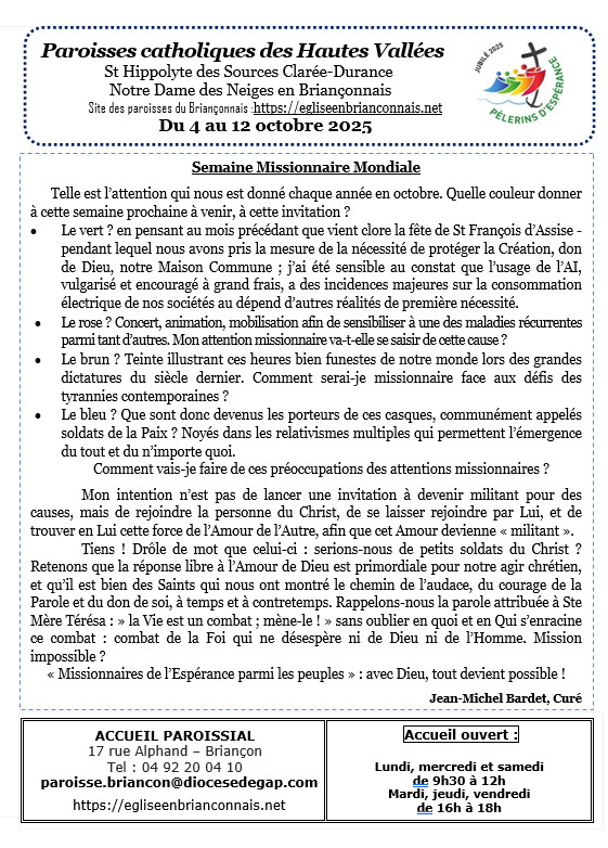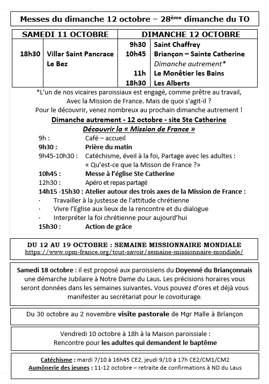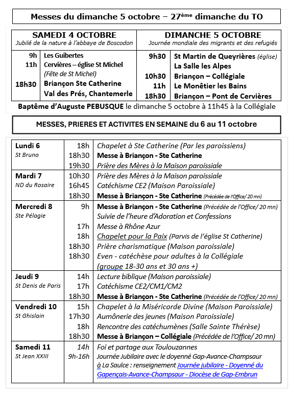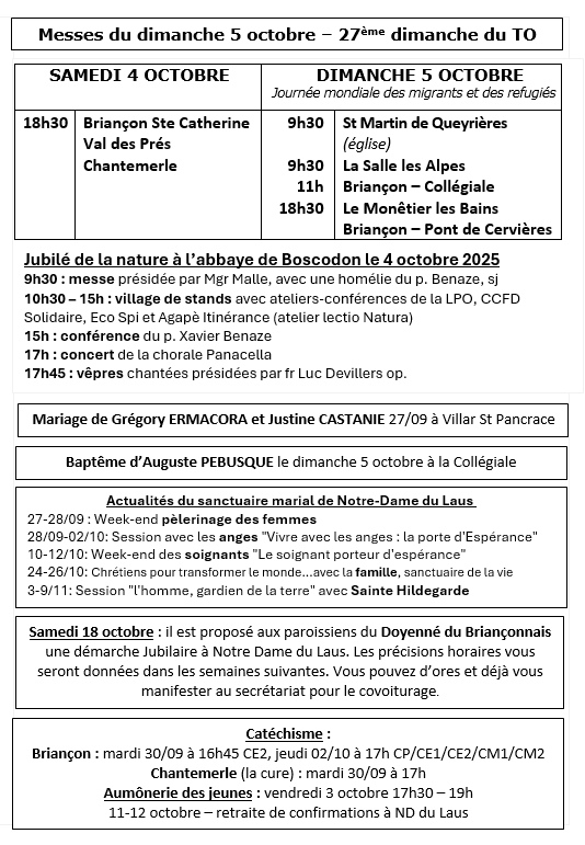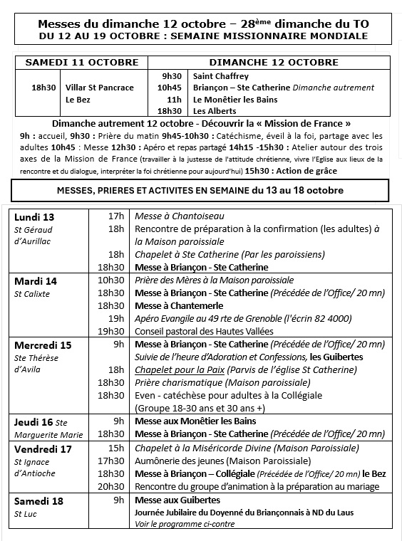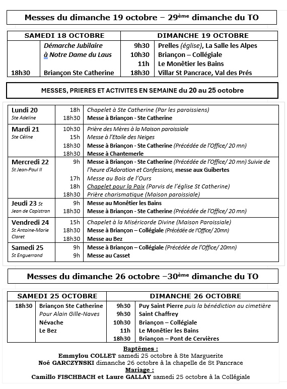 Messes en octobre 2025 dans le Briançonnais : Télécharger