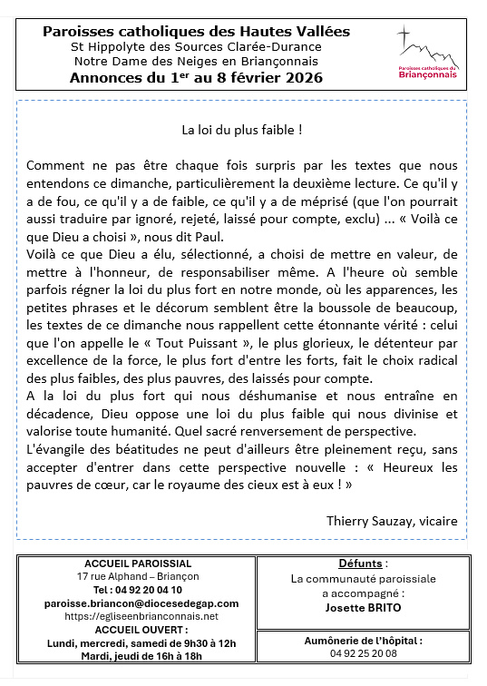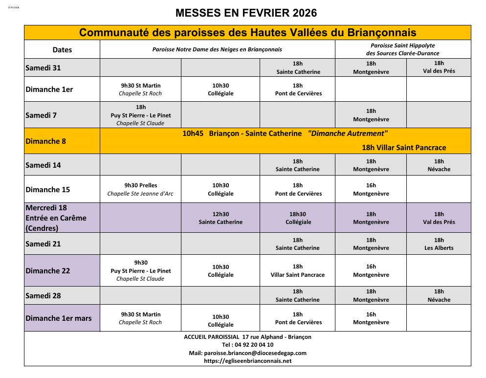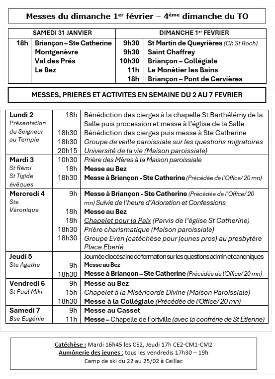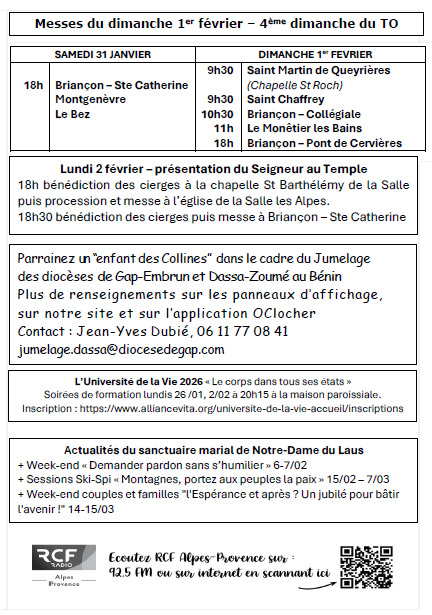 Messes en février 2026 dans le Briançonnais : Télécharger