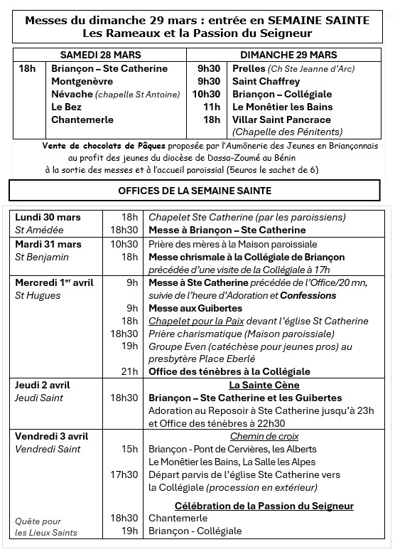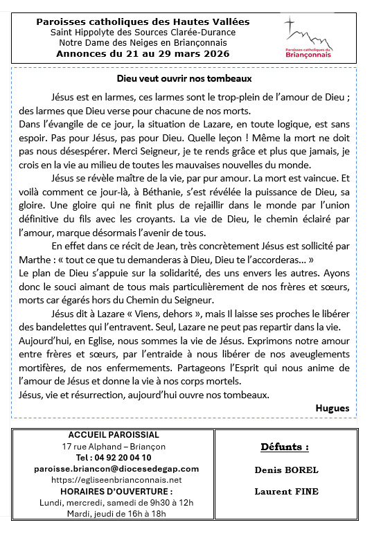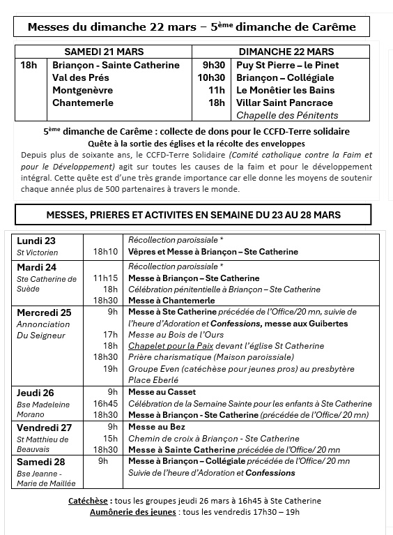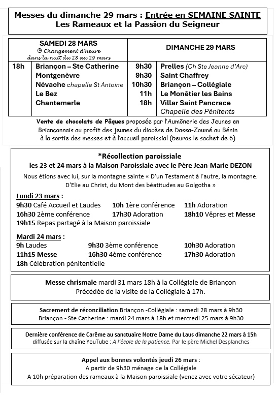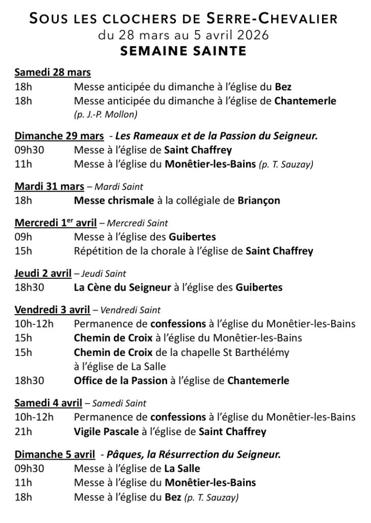 Messes en Mars 2026 dans le Briançonnais : Télécharger