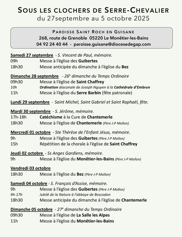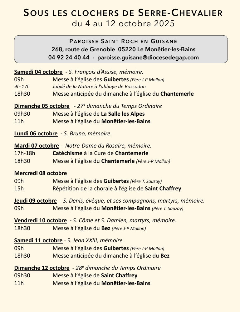 Messes Dominicales en Guisane Sept-Oct 2025 : Télécharger