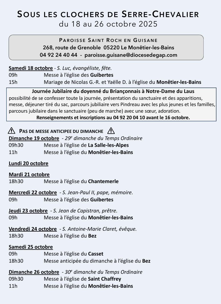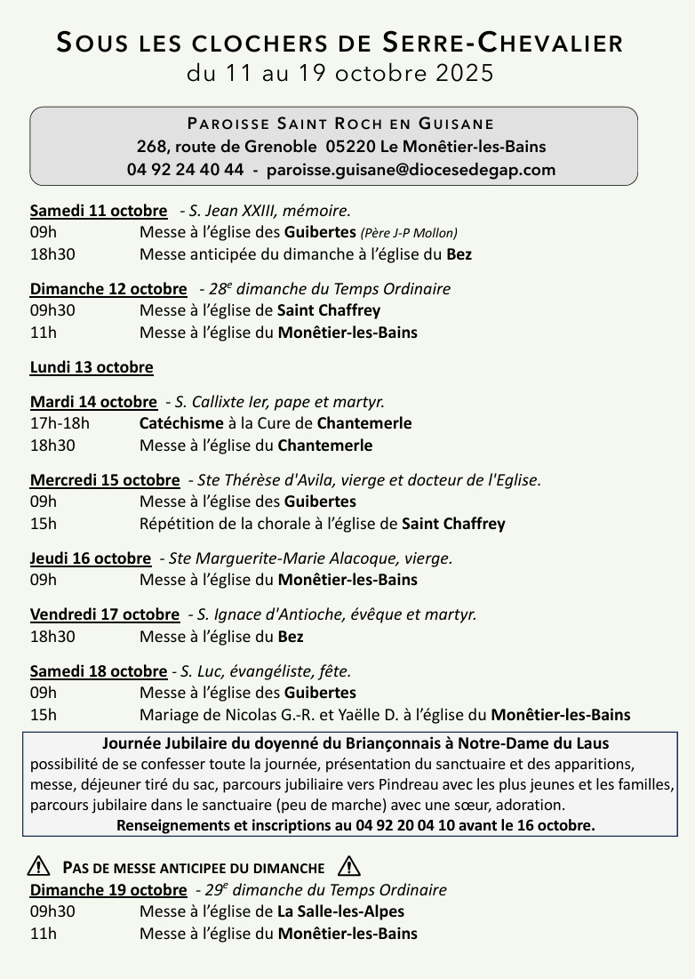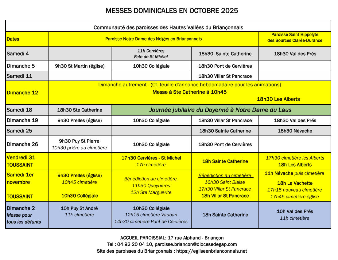 Messes en octobre 2025 dans le Briançonnais : Télécharger