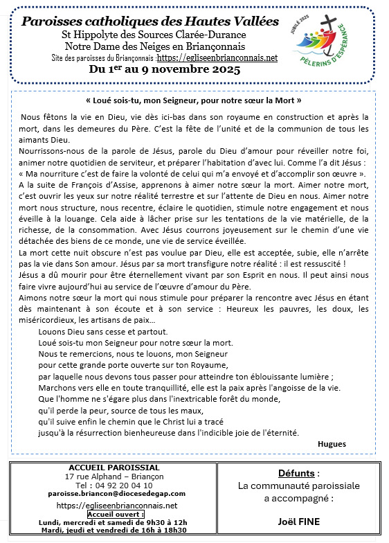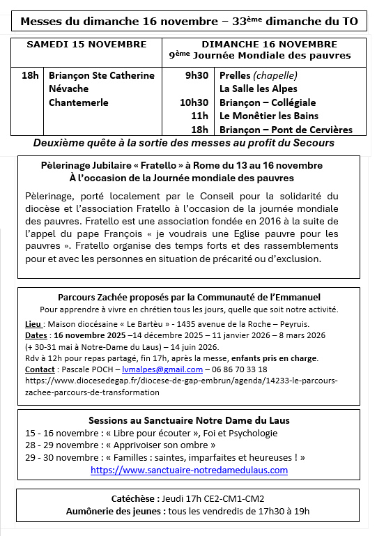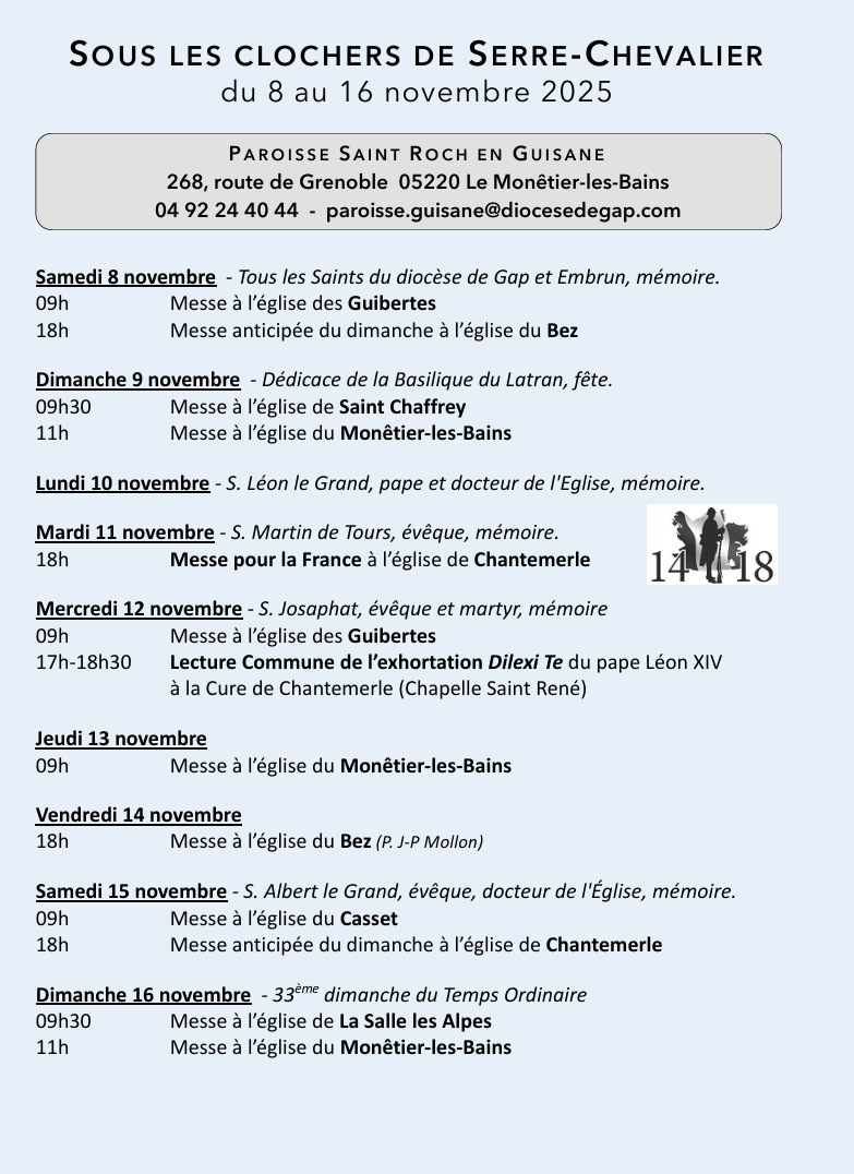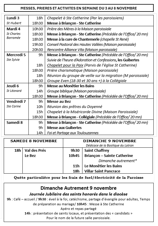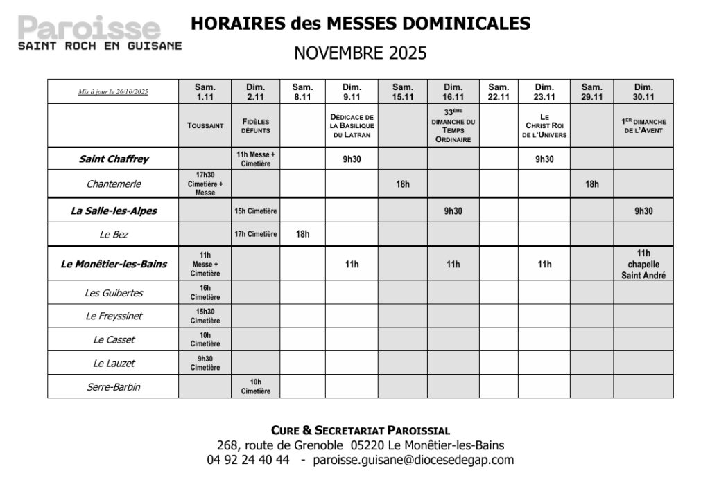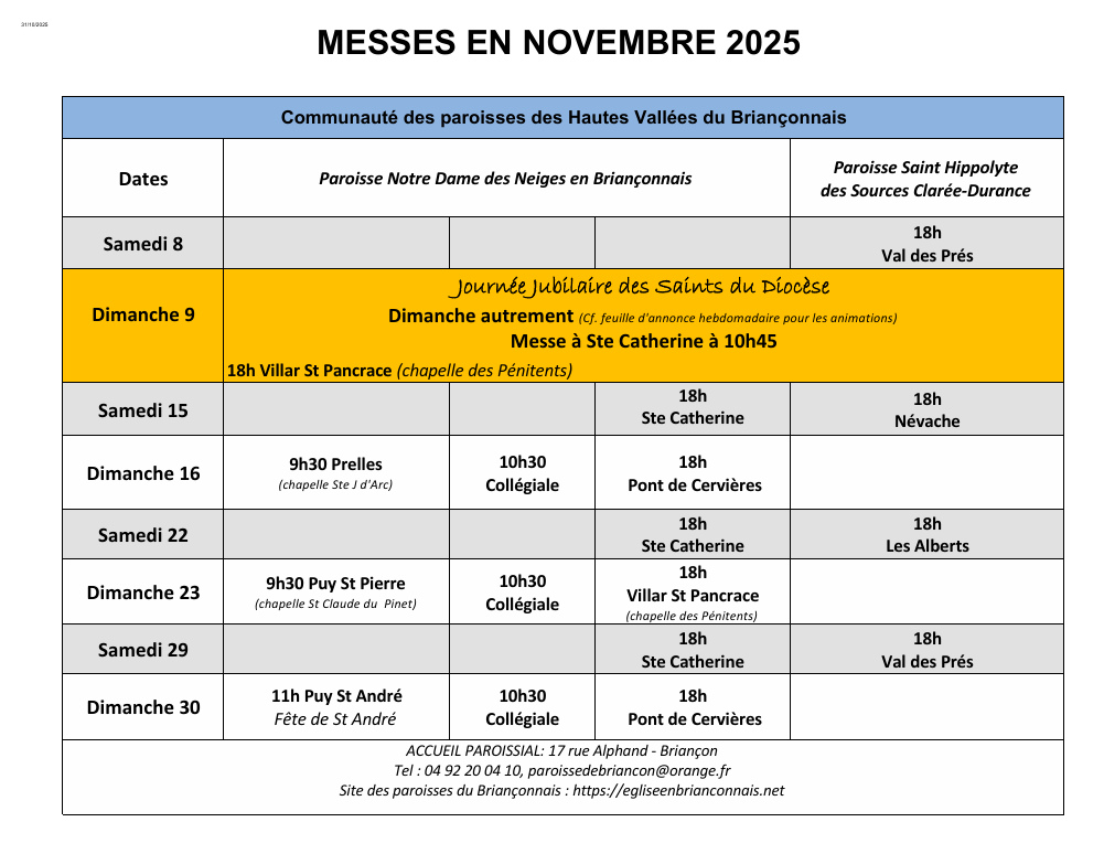 Messes en novembre 2025 dans le Briançonnais : Télécharger