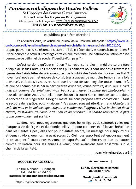 Annonces semaine 46/2025 – Messes en Guisane : Télécharger