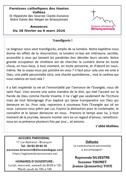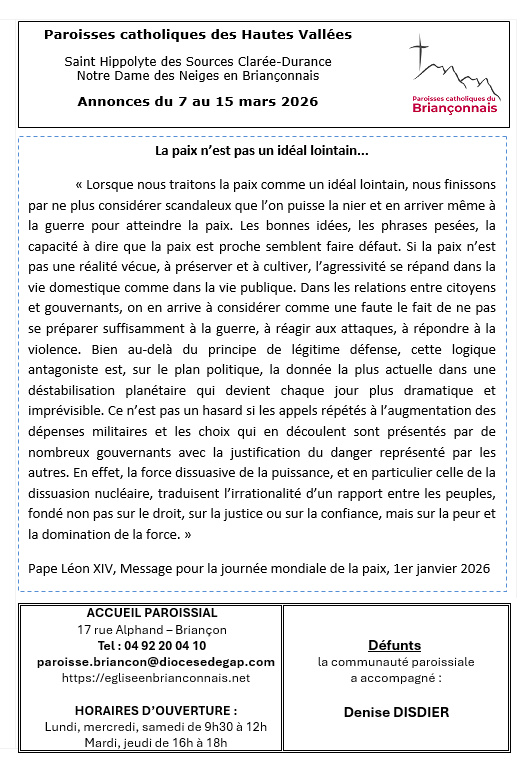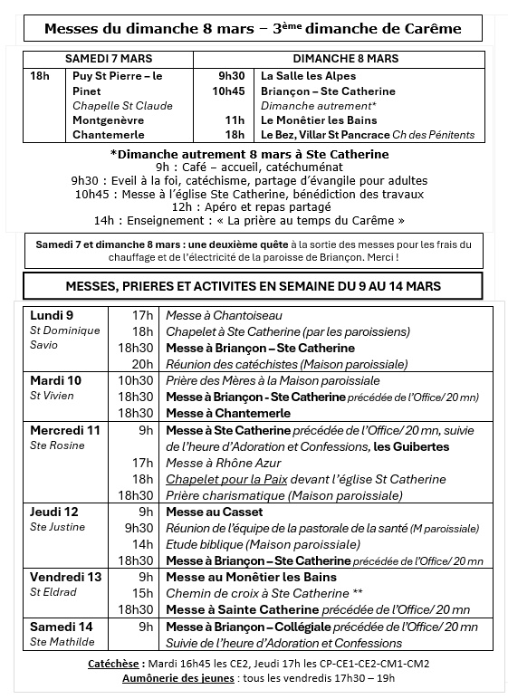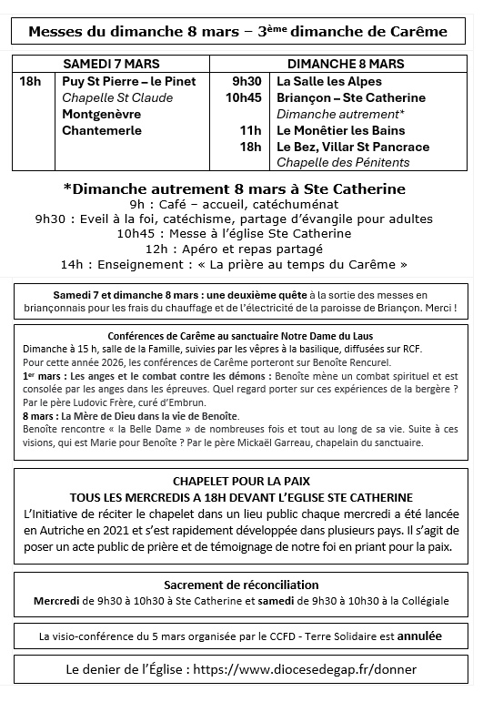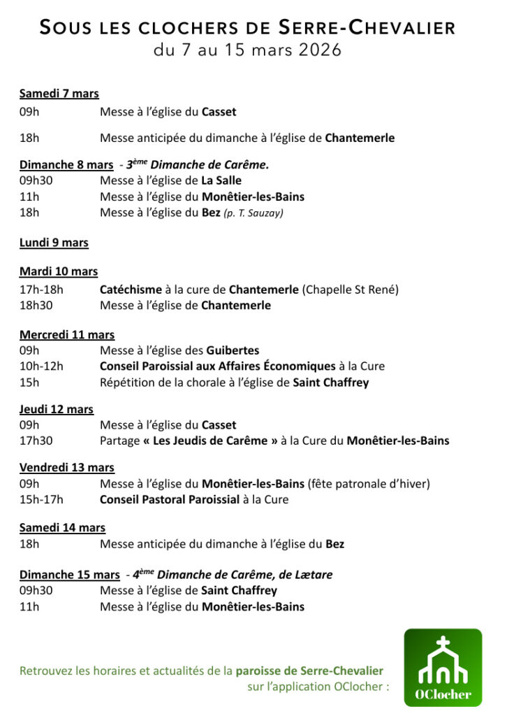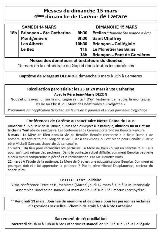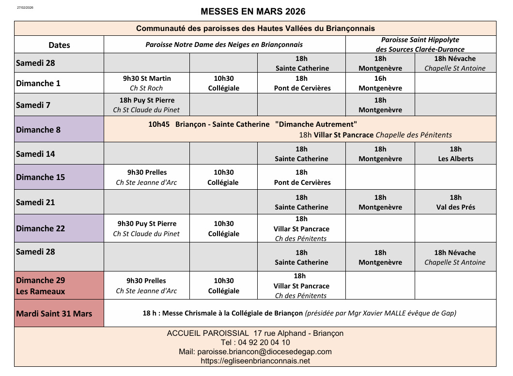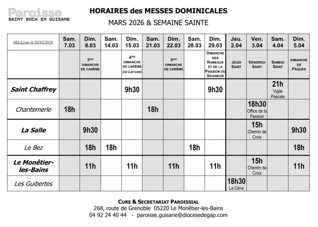 Messes en Mars 2026 dans le Briançonnais : Télécharger