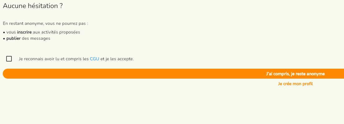 Le choix « je reste anonyme » renvoie directement à la page Oclocher